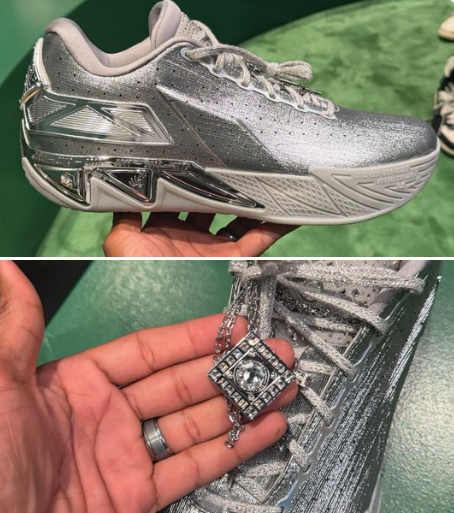 周日下午,全明星期间库里与约内斯库、欧文一同训练的照片和视频流出:他上脚了安踏狂潮5二代,鞋跟位置赫然印有库里品牌的Logo。